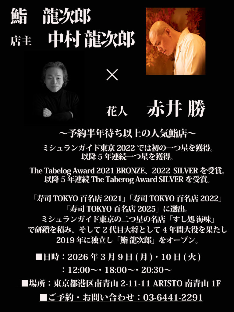 鮨 龍次郎さんで開催いたします。